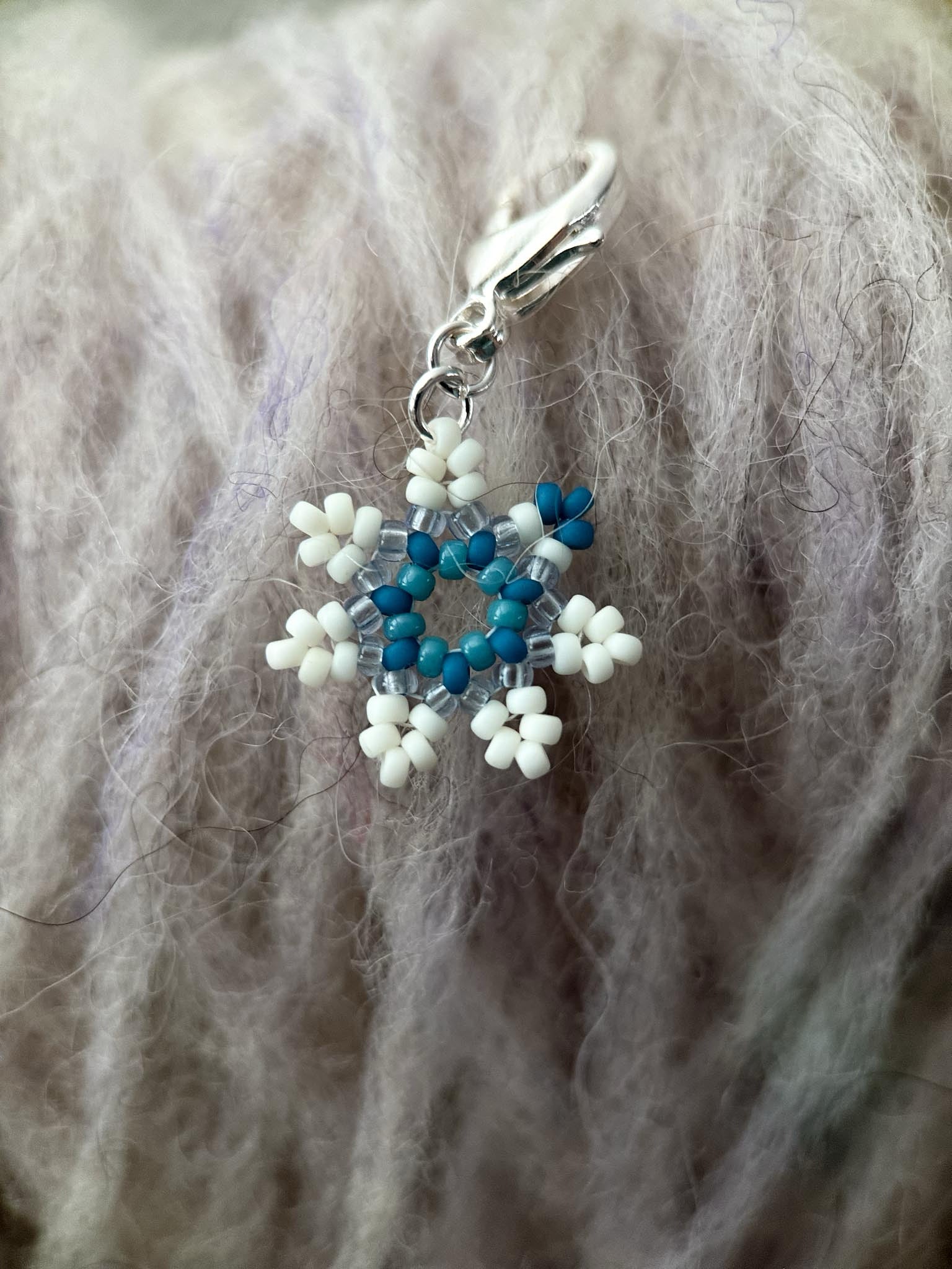 A hand beaded snowflake charm for the 2025/2026 winter season.